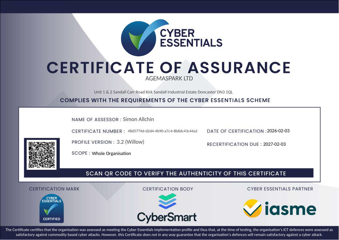Agemaspark operates across a range of highly regulated and safety-critical sectors, including nuclear, defence, aerospace, automotive, medical devices, and oil & gas industries, where quality, precision, and reliability are paramount. Increasingly, strong cybersecurity credentials are also becoming a fundamental requirement to operate within these sectors, making certifications such as Cyber Essentials vital.